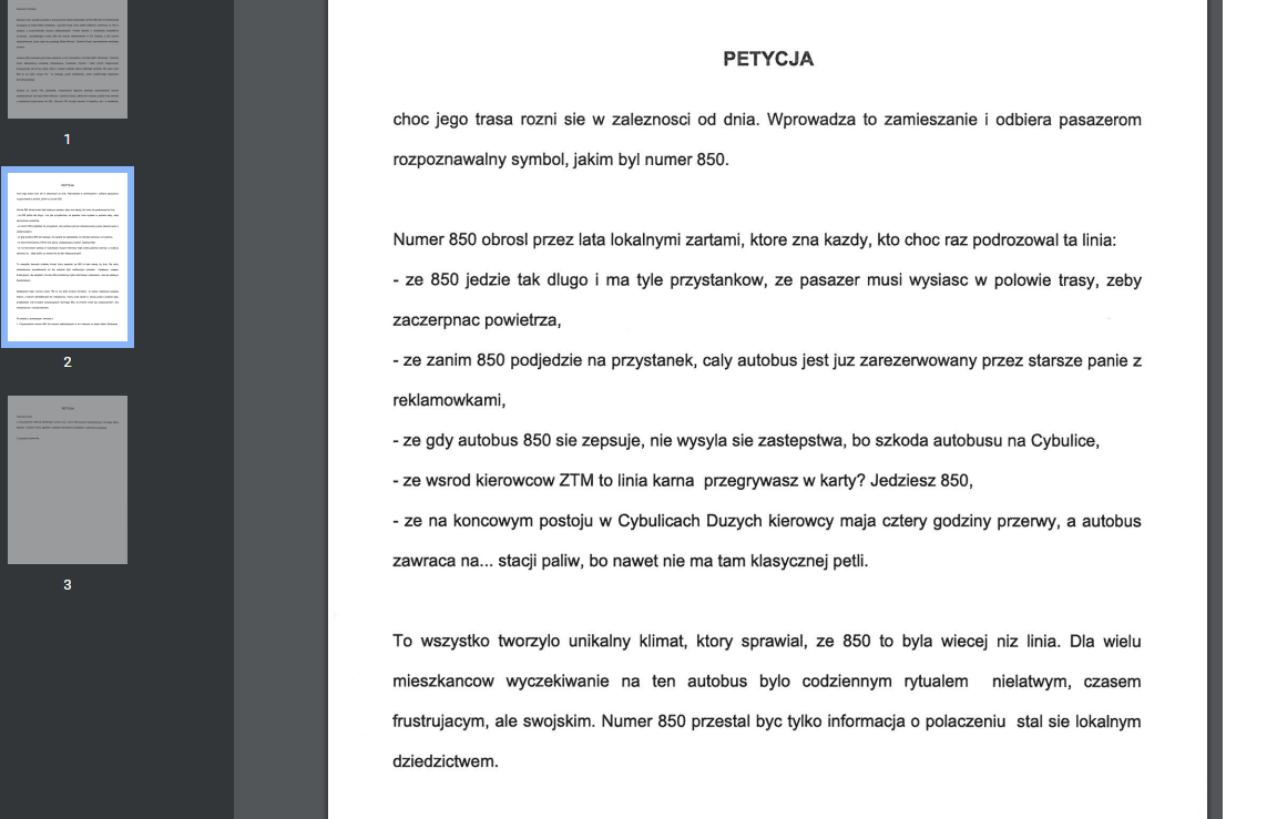 Tymczasem do ZTM-u wpłynęła petycja od pasazerów autobusu do Cybulic. Chcą przywrócenia numerku 850. Głównie dlatego, że numerek ten stał się dla wielu memem i szkoda to zaprzepaszczać.