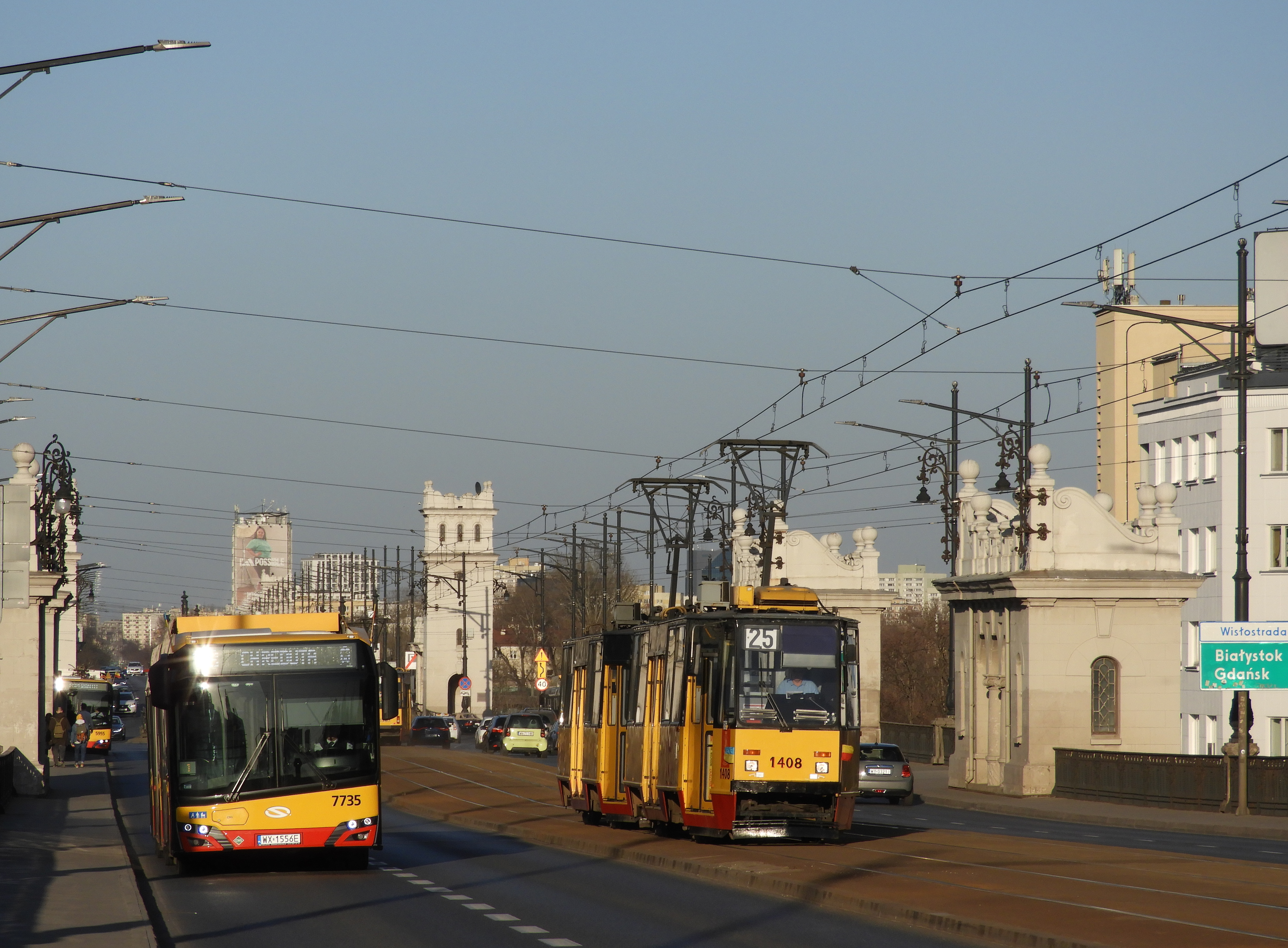 Spójrzmy na poniższe porównanie. Zdecydowanie nie powiedziałbym, że numer 1408 jest mniej czytelny od 7735. Może i na jakimś innym zdjęciu byłoby inaczej z widocznością cyfr, niemniej tutaj przynajmniej mamy oba pojazdy w identycznym świetle i w dość zbliżonej odległości (a nawet tramwaj jest nieco dalej). Owszem, czasem bywa też problem np. z naklejkami wypłowiałymi, czy ze słabo widocznym cieniem (przez co nie są tak czytelne jak na tym zdjęciu), ale to nie jest wina czcionki samej w sobie, tylko naklejek, które być może są słabej jakości lub np. trzeba je częściej wymieniać.