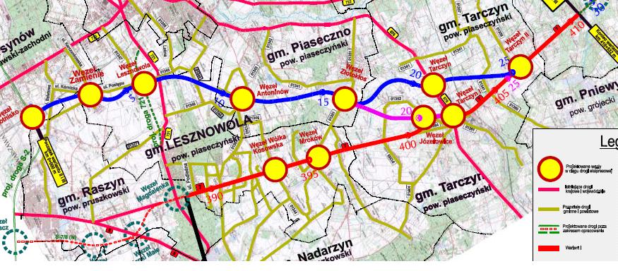 • 2 węzły z istniejącą drogą krajową nr 79 Warszawa-Góra Kalwaria