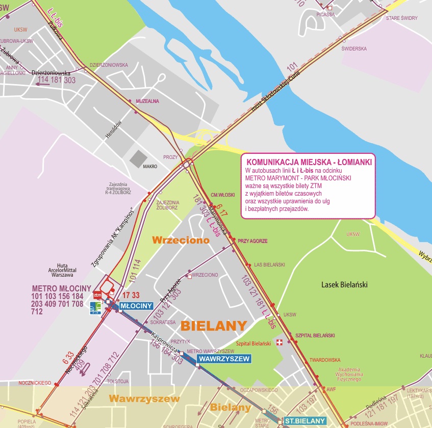 Czemu na tym arkuszu na pętli Metro Marymont linie Ł i Ł Bis są pomarańczowe, a wzdłuż Marymonckiej - już różowe?