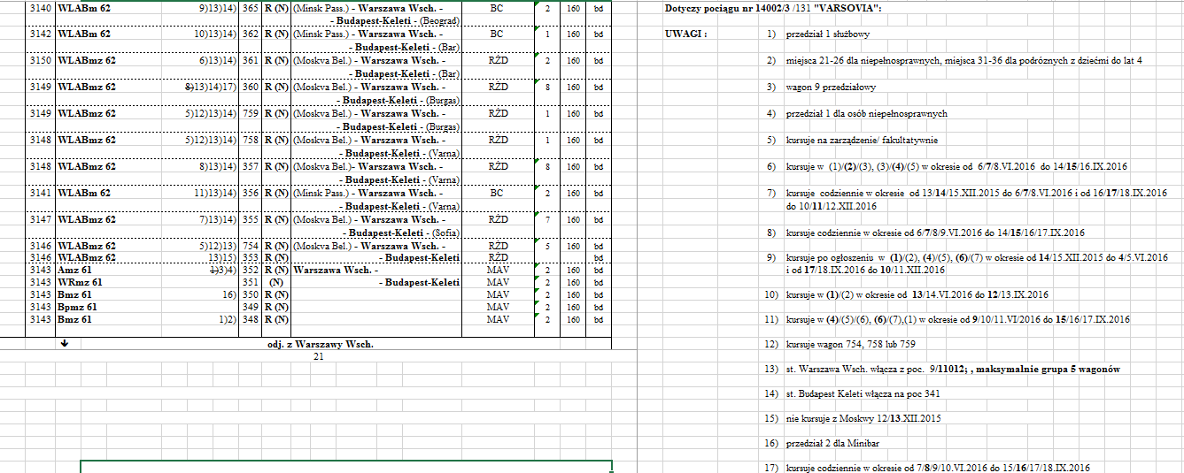 Pociąg EC Varsovia z Warszawy do Budapesztu prowadzi rosyjskie wagony z Moskwy do Sofii, Belgradu, Burgas, Warny i Baru przełączane z/na Poloneza.