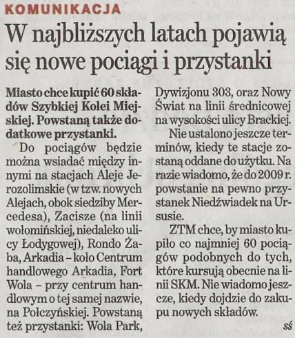 Nic konkretnego nie napisano. Dziwi mnie fakt chęci zakupu nowych składów dla SKM. Jeszcze niedawno zapowiadano likwidację SKM