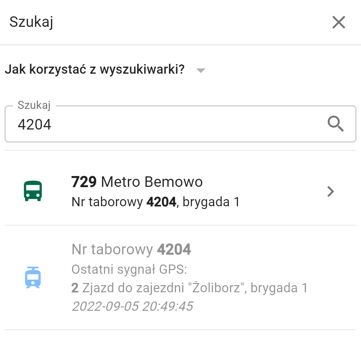 Jest też opcja, że jak pojazd obecnie nie udostępnia sygnału GPS, to widać datę ostatniego sygnału i na jakiej trasie wtedy jeździł. W razie czego, to ta opcja działa tylko w Warszawie jak na razie :) .