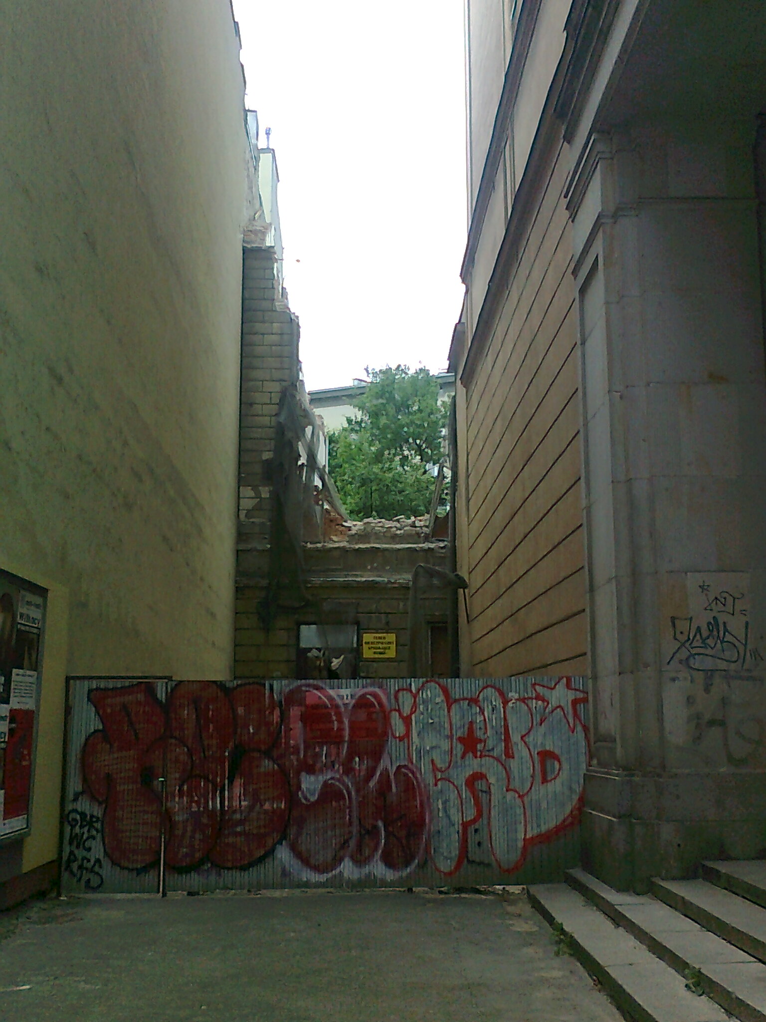 Przy okazji: po cichu znika niezamieszkana od wielu lat kamienica, na tyłach pl. Zbawiciela. Zdjęcia z 1 czerwca i z 12 czerwca...