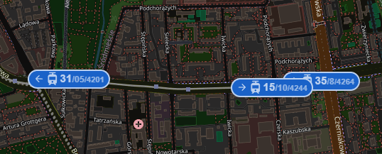 W (2) w ogóle nie widać tramwajowych słupków na nowej trasie, a po kliknięciu na "stary" przystanek, przez który kursuje 11 wszystkie odjazdy tej linii są offline.