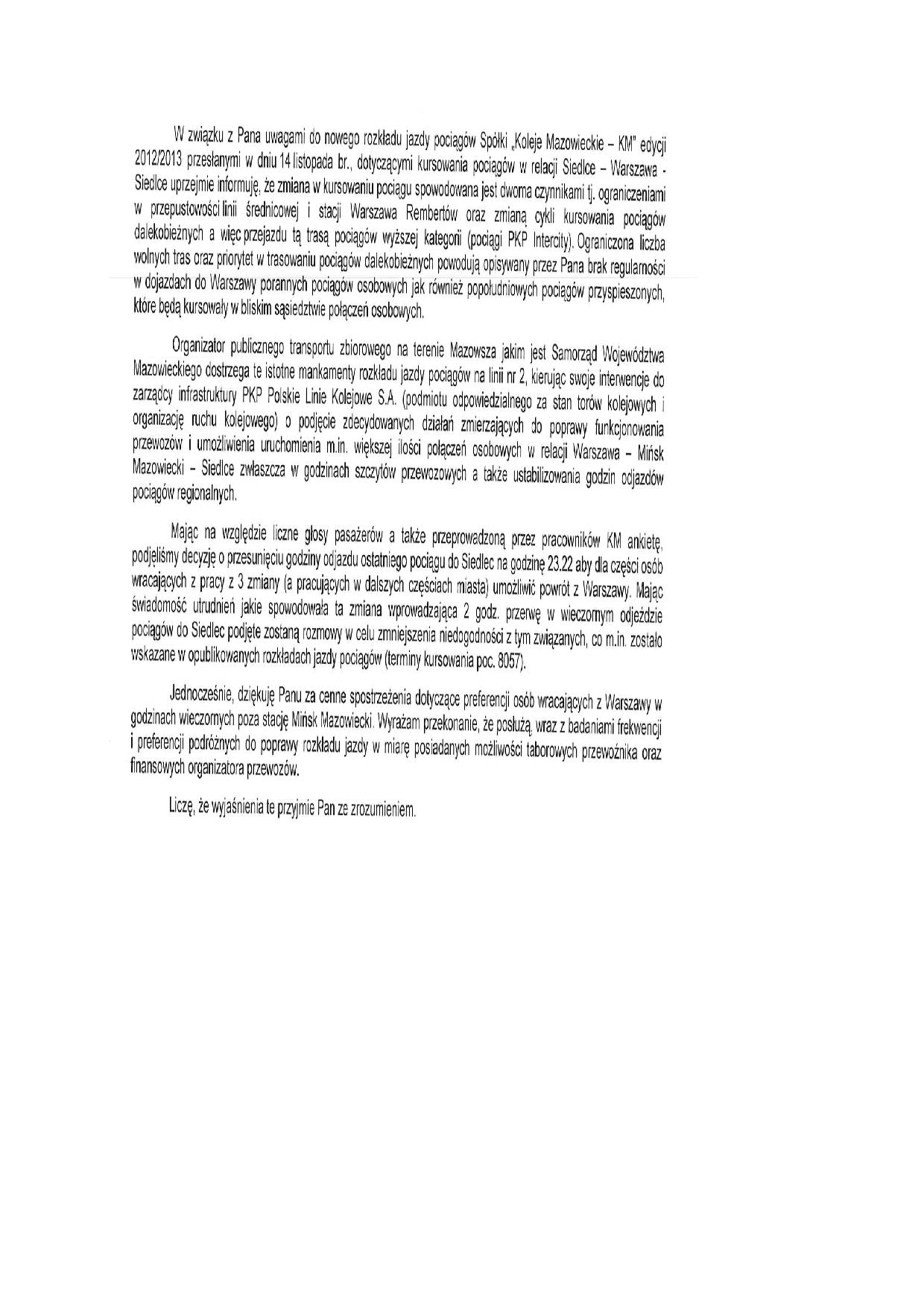 marian89mr pisze:Kilka mankamentów KM2 (Siedlce) z pkt. widzenia Mrozów, Cegłowa ...