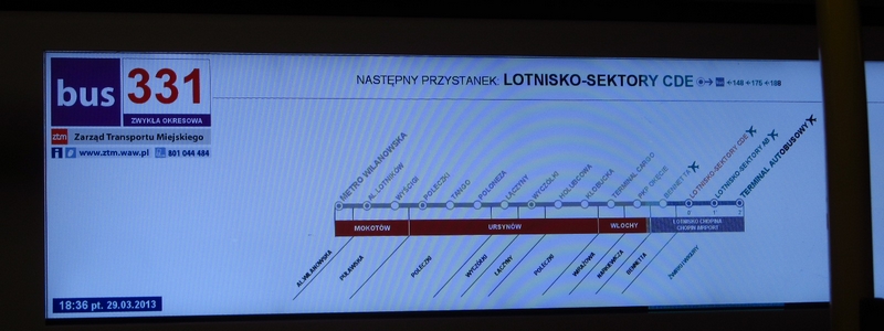 Gorzej jest na tablicach bocznych, tam tylko Novamedia nadaje odpowiedni kolor numerowi linii. Macrosystem - różnie. W Mobilisie koloruje (choć chyba tylko podmiejskie), a w MZA każdy numer czarny.