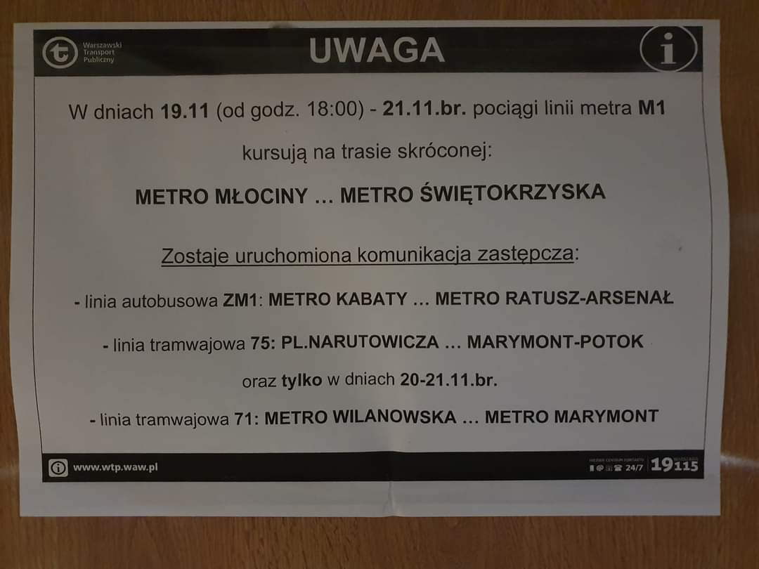 Ptaszki ćwierkają, że zamknięta ma być również Marszałkowska z racji na remont ulicy więc autobus, który ma zastąpić metro i nie jechać obok metra to dość dziwne rozwiązanie