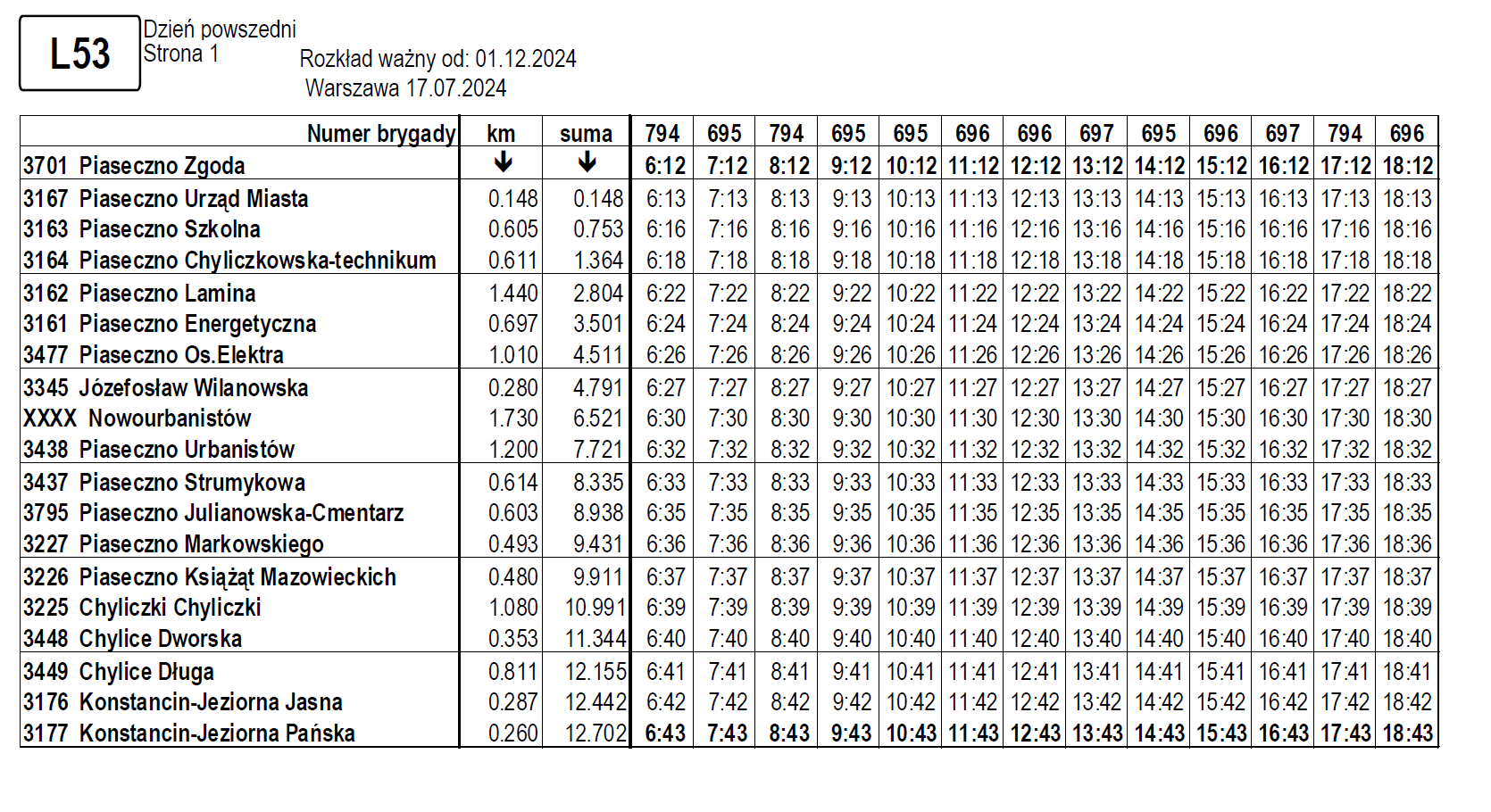 97 najlepszeKrzysiek_S pisze: ↑23 sie 2024, 21:42L29 stanie się linią 42 od 1 grudnia na obecnej trasie, a od stycznia wydłużone do Sochaczewa i Błonia przez Leszno i Kampinos. Powstanie też linia 41 Podkampinos - Leszno, 43 Błonie - Roztoka, 44 Roztoka - Kampinos. L-6 zastąpi linia 96 Zaborów Szkoła przez Borzęcin Duży do Starego Bemowa, 97 zastąpi L-7 z Dziekanowa Leśnego[ Łomianki] do Ożarowa i dalej przez Piastów do Malichy Sadowa [ Pruszków] i L18 jako 98 Sieraków- Izabelin- Stare Babice. Będzie dofinansowanie z funduszu, przetarg na obsługę oraz honorowanie biletów ZTM od 30 dniowych w górę. A tak bilety od złotówki po 4 złote. Projekt zmian może ulec zmianie bo będzie jeszcze konsultowany. Nie mniej linie L papa z powiatu warszawsko zachodniego.