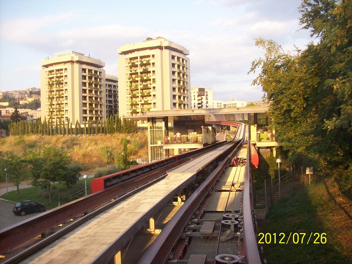 Kolejka jeździ z przedmieścia, dla turystów są schody ruchome w dwóch miejscach i pochowane w dziwnych miejscach windy + oczywiście normalne schody + windy. Choć widziałem, że i turyści tym minimetrem jeżdżą...
