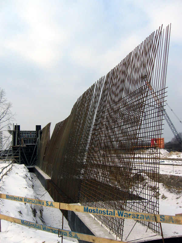─ budowa wiaduktu nad torami kolejowymi WKD: obiekty WA-04A i WA-04B w ciągu drogi ekspresowej i obiekt WA-04C w ciągu drogi lokalnej dla każdego obiektu oraz ściany oporowej SO-07 z gruntu zbrojonego;