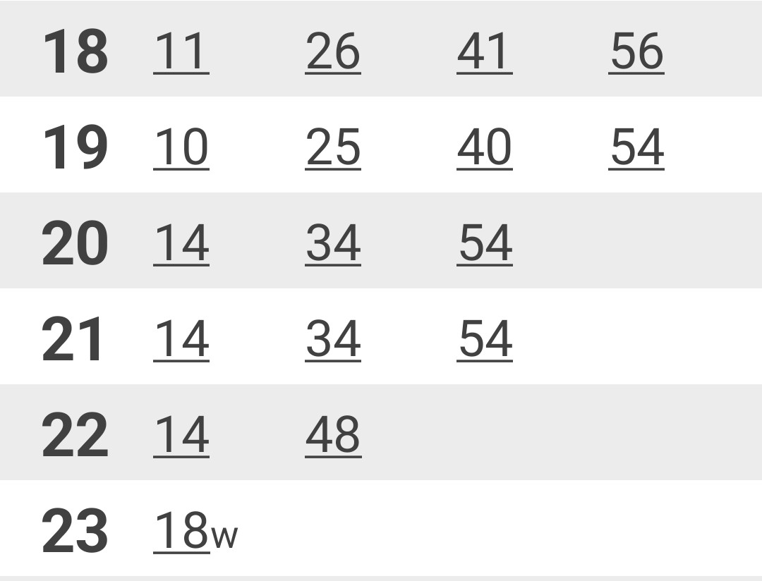 Odjazdy z Górczewskiej: 18.24, 18.54, 19.08, 19.21, 19.35, 20.03, 20.18 itd.