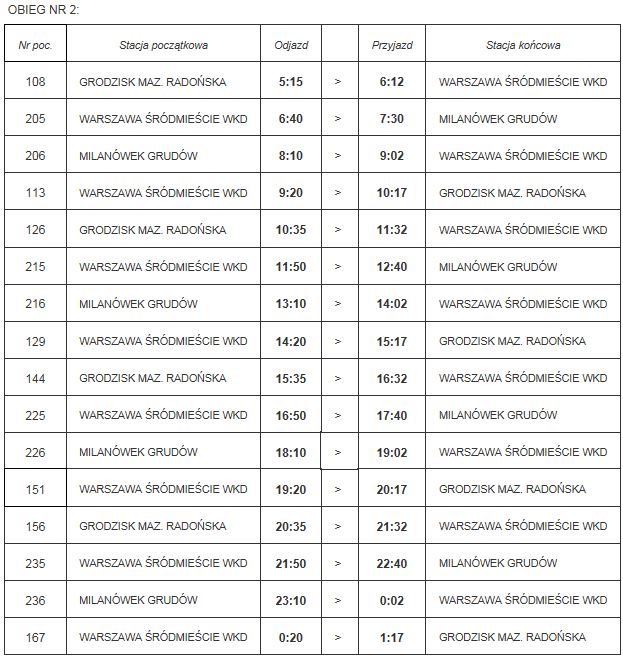 jazda na pociągu Nr 124(9:35) do W-wa Śródm. powrót 123(11:20); kurs 130(12:35), powrót 129(14:20); kurs 134(13:35), powrót 131(15:20); kurs 146(16:35), powrót 139( 17:20)?;